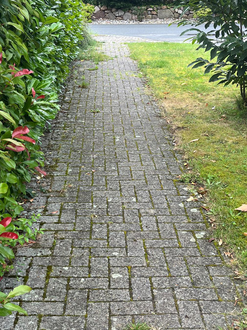 Unkraut- und Moosentfernung: Befreiung der Gehwege von unerwünschtem Bewuchs.
